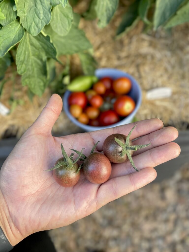 This is Kyrié’s favorite cherry tomato variety. She describes them as tasting like a tomato and grape hybrid.