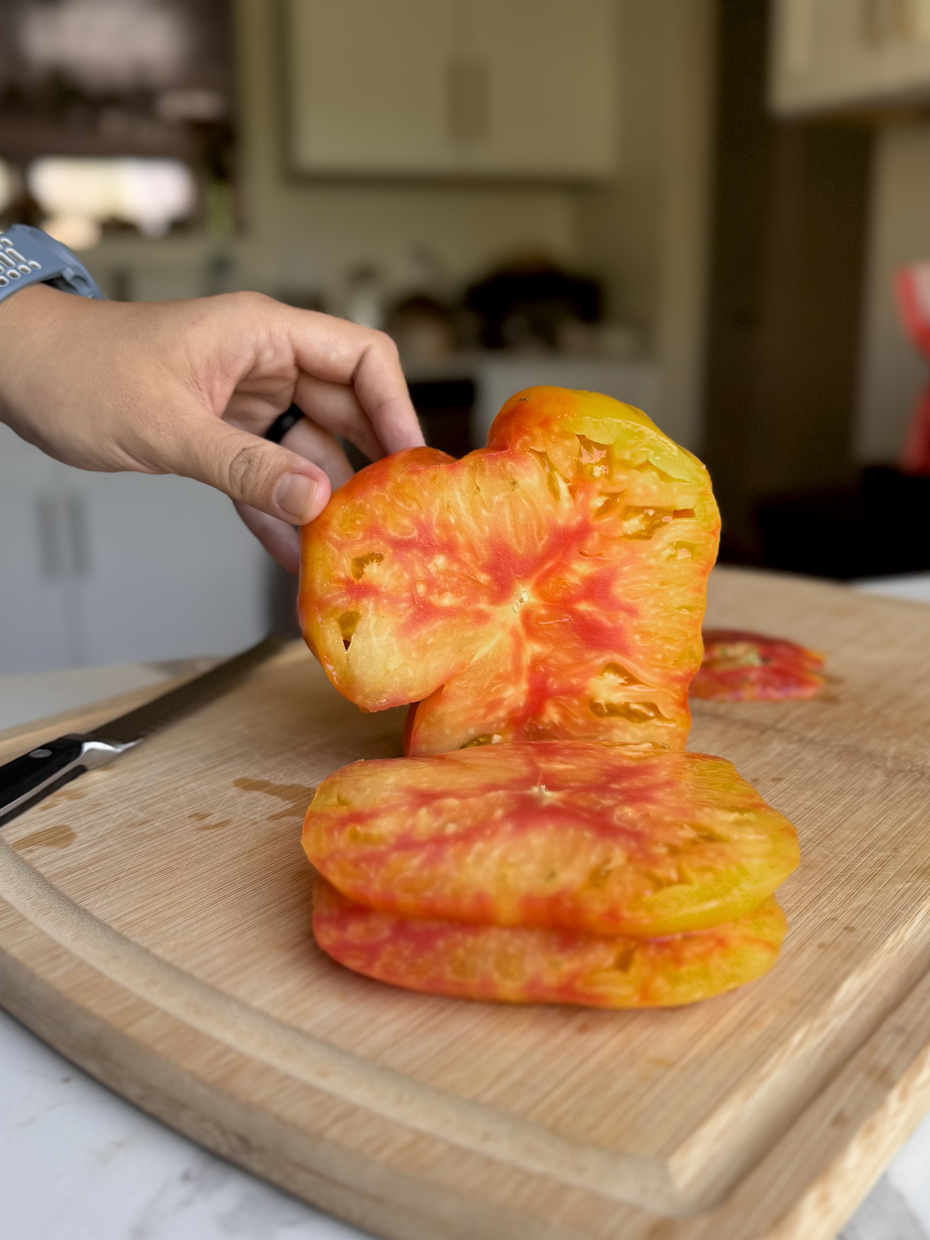 This is Kyrié’s favorite tomato variety, so I grow it every year for her. When I first grew it, I didn’t realize how big they get! I’ve grown many that are multiple pounds.