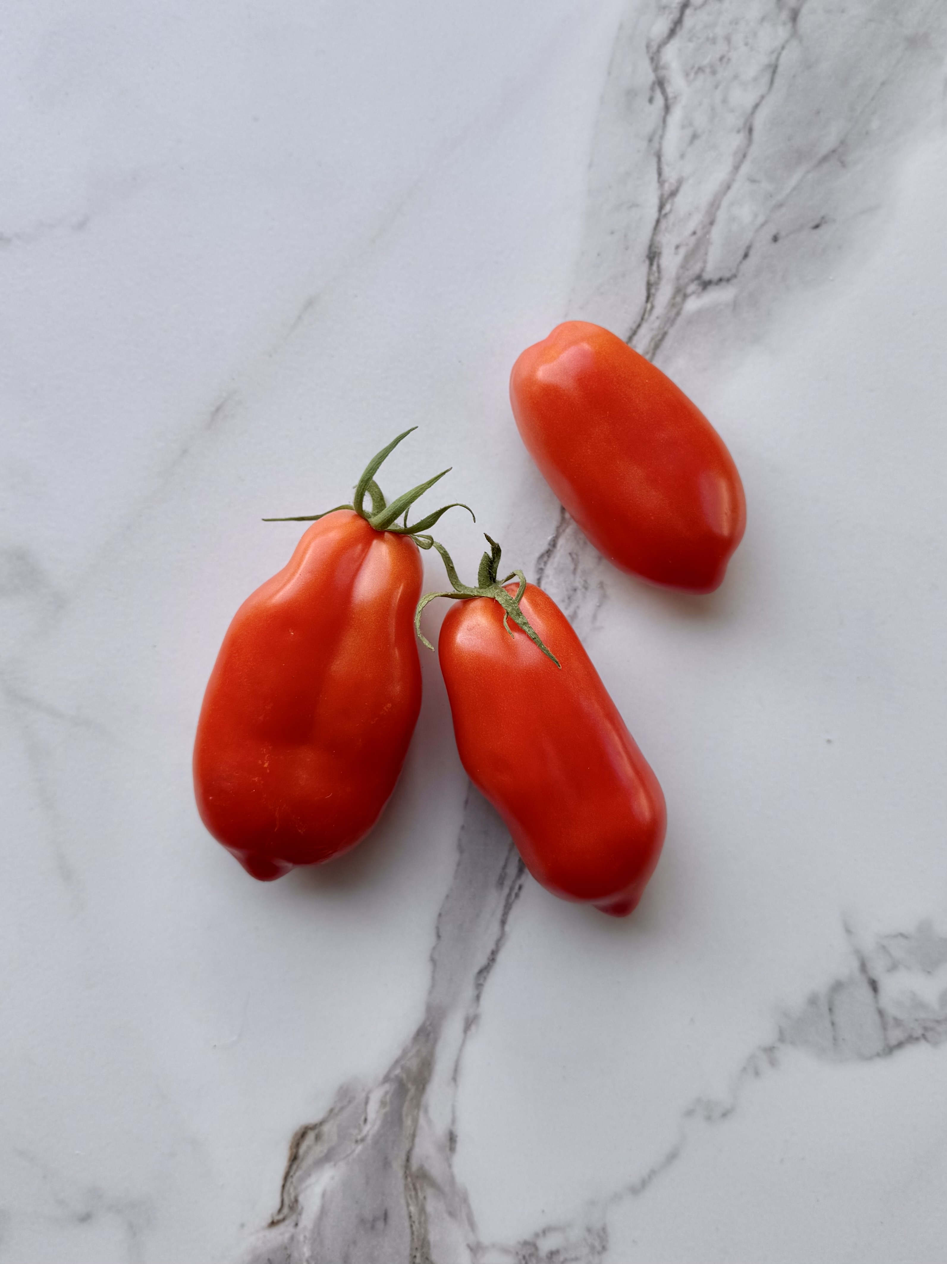 They have fewer seeds and lower water content. Because of that, I highly recommend this tomato for sauces or pastes! Additionally, I prefer the taste to Roma tomatoes. San Marzanos are amazing for pico de gallo as well!