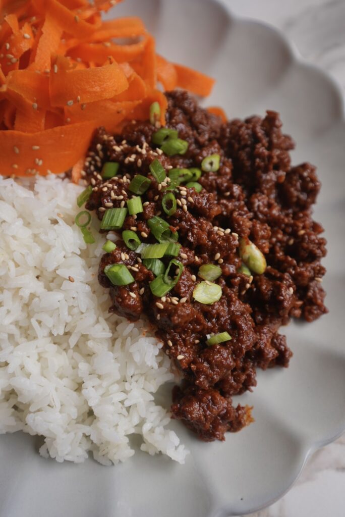 Being a food content creator, I have people ask me all the time what I eat on a day-to-day basis. My answer is almost always this 15-minute Spicy Korean Beef Bowl. It’s easy, packed with protein, carbs, and is so easy to incorporate veggies into.